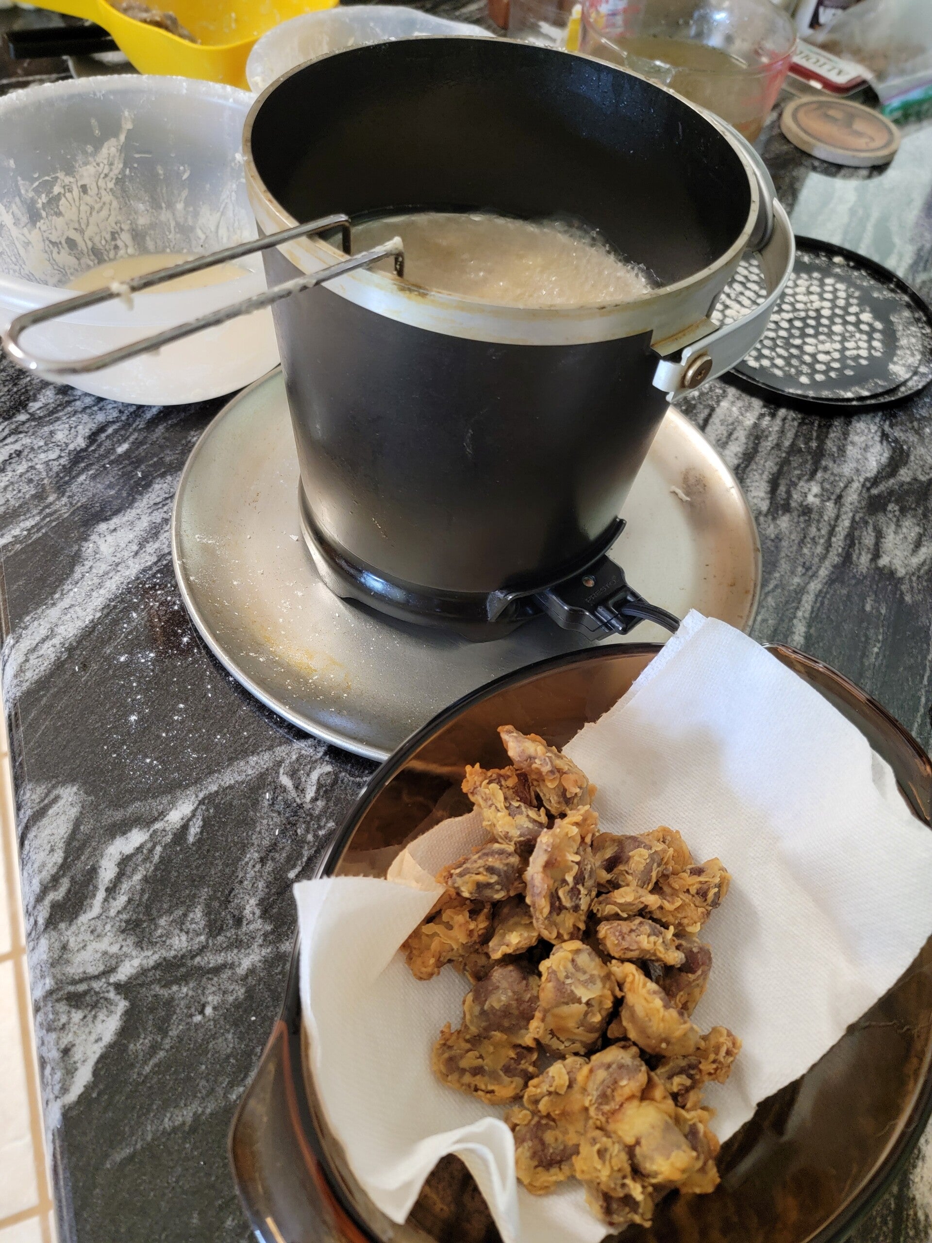 WOW! What a wonderful surprise! After cooking them, soaking them in buttermilk to continue the tenderizing process, breading and then frying them in a deep fryer, WOW is all I can say! They even smelled better than ANY I had ever prepared before! That alone suggested to me that I had finally gotten it right! Even my wife thought they smelled really good and she had NEVER wanted any gizzards! But the smell of these had her over there at the basket of gizzards "testing" one, then another and then about a half dozen more! That night was the very first night she ever joined me for a dinner of fried chicken gizzards! And THAT is making a really strong statement as to the quality I had finally achieved!