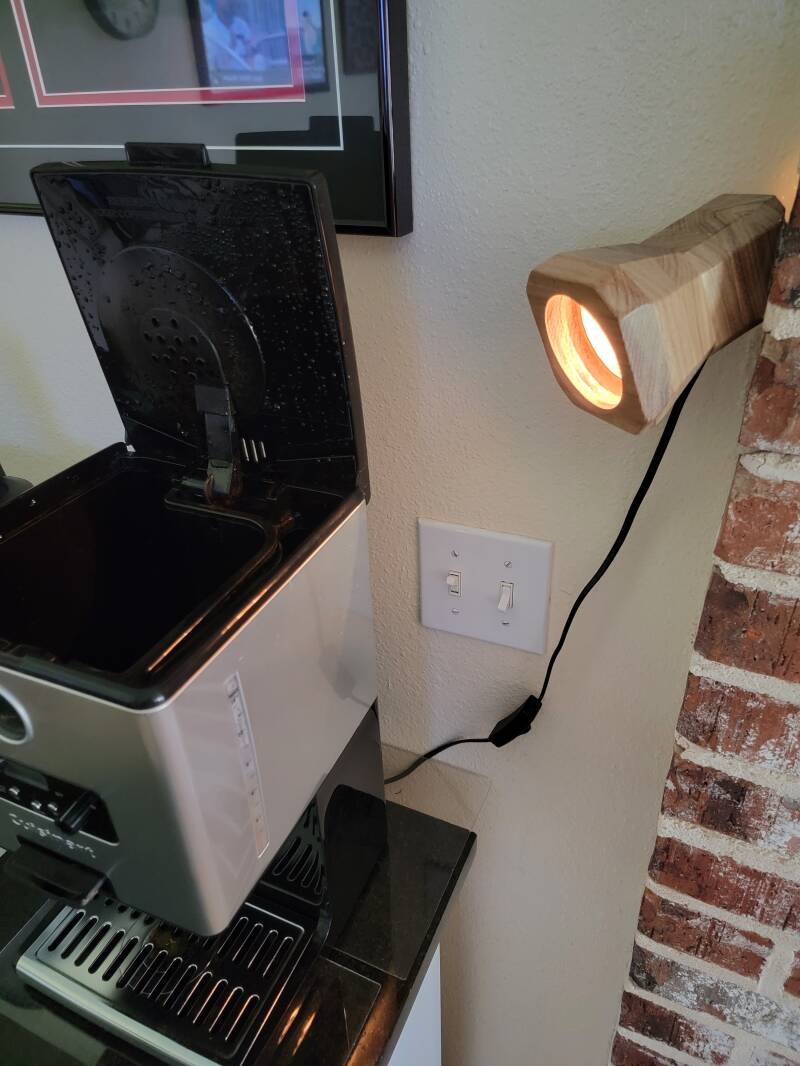 Anyway, being the first up in the morning has a few challenges, one is not being able to see what I'm doing at certain times of the year without having to turn on bright lights, which, early in the morning, is NOT one of my favorite things to do! As I was thinking about it one day, my mind drifted into a "what if" kind of state and, next thing I knew, I was developing, in my mind, a light source that I could live with...bright enough to help me see clearly but definitely NOT a BRIGHT LITE, surely nothing of the LED nature! Shortly thereafter, I was sketching drawings on a scratch piece of paper! I finally reached a point where I could at least "begin" to play with some wood to see what would work, what would be too large or awkward, and what would be bright enough, while not being too bright and so forth!