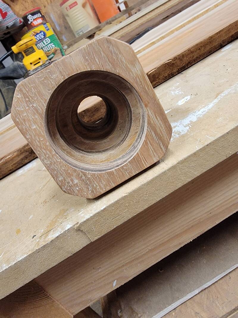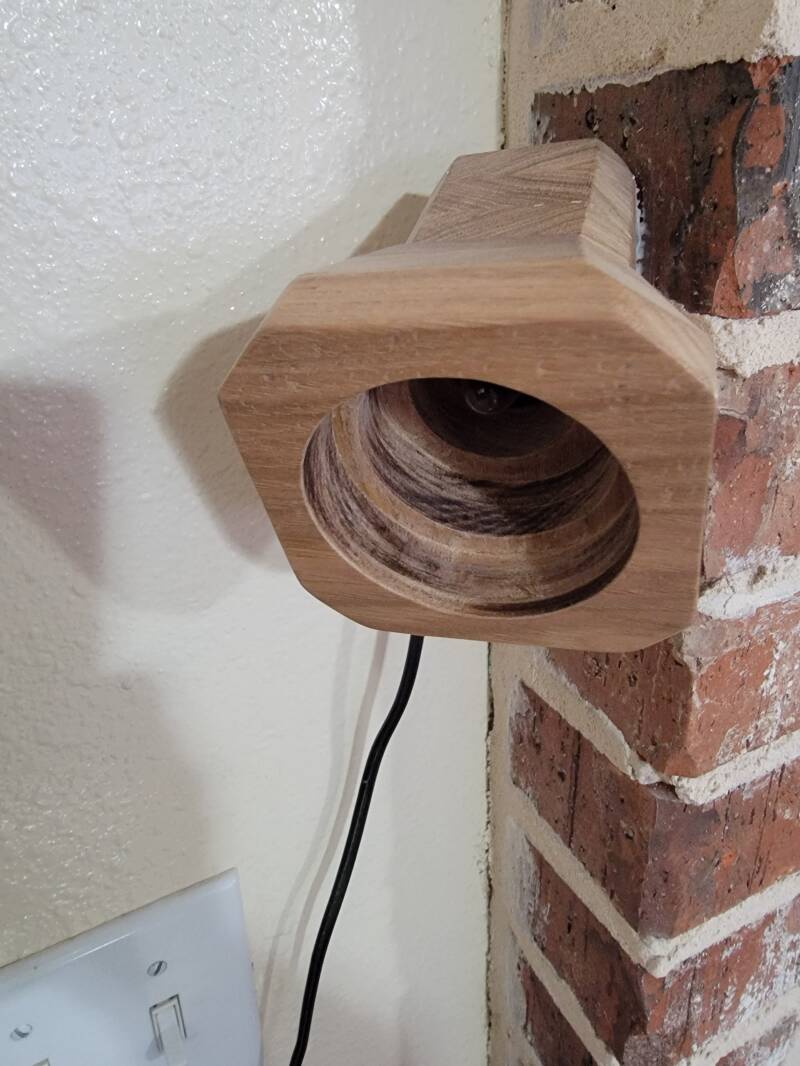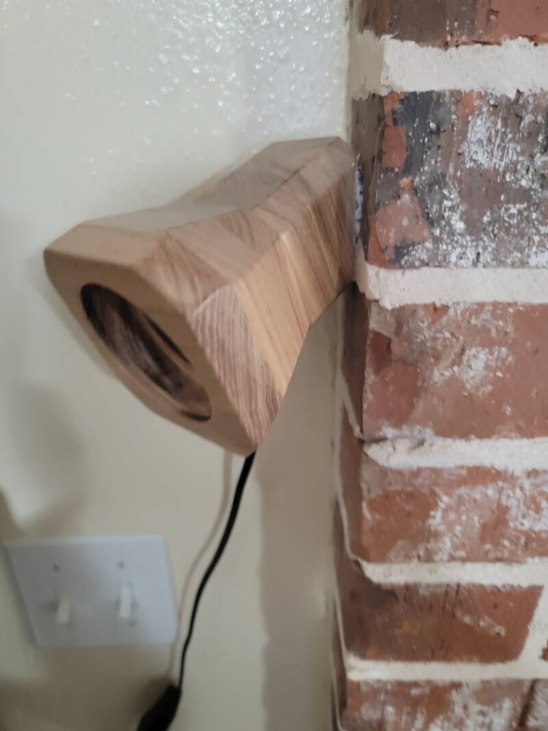 I began by selecting some Pecan wood for it's beauty! Next I created small blocks and bored holes through the center of the blocks! I then began testing them by attaching the blocks together to try to get a feel for if I was going in the right direction or not! Eventually, I was able to attach all the blocks using wood glue and leaving them alone to set up really well. I then was able to determine the angle where the fixture would be attached to the edge of the brick wall. I then threaded the electrical portion of the wiring where the light bulb would be inserted, into the light fixture. Since I had determined that I would need to use dowels to attach the fixture to the brick wall, I then had to bore a small hole, about 3/8" in diameter, into the back of the light fixture and another hole of matching diameter into the brick wall. I also had to ensure that the angle of the holes matched in order to get a nice, smooth fit!